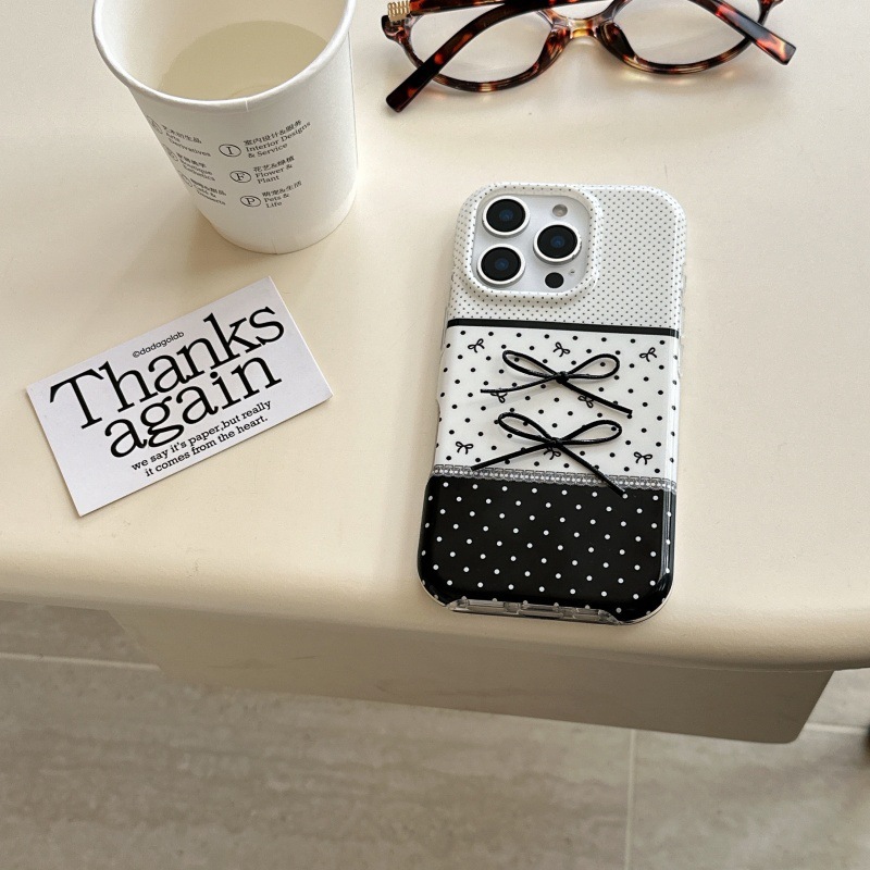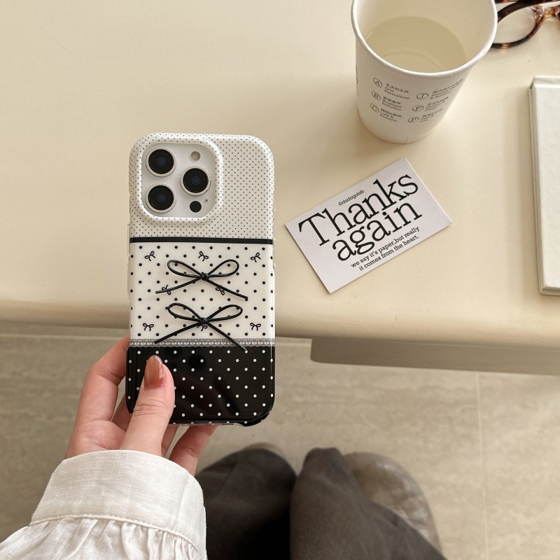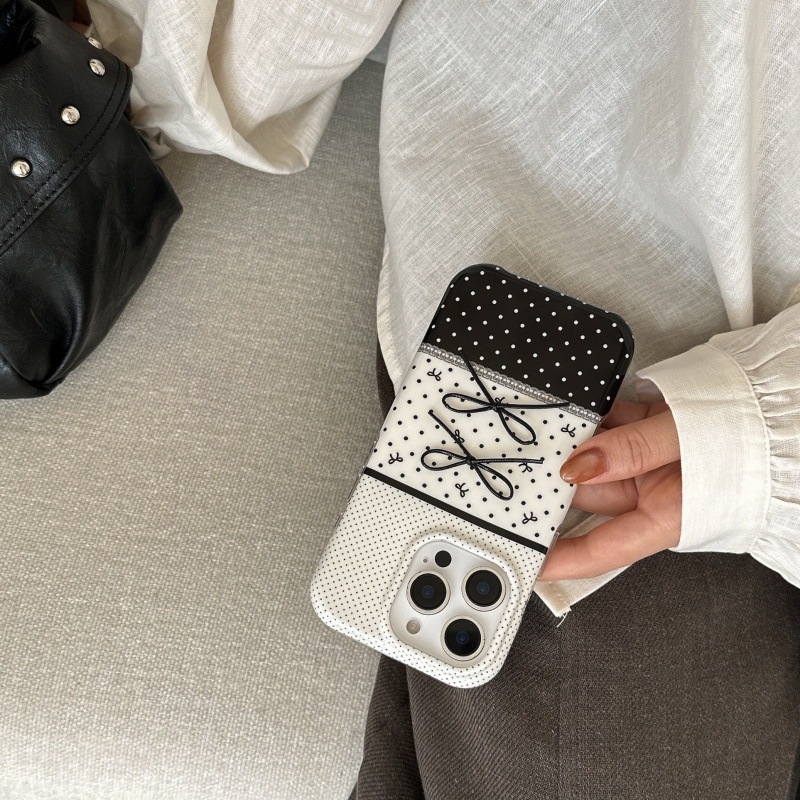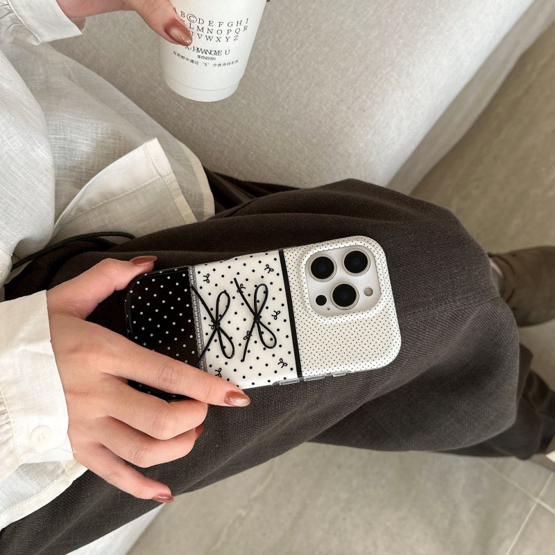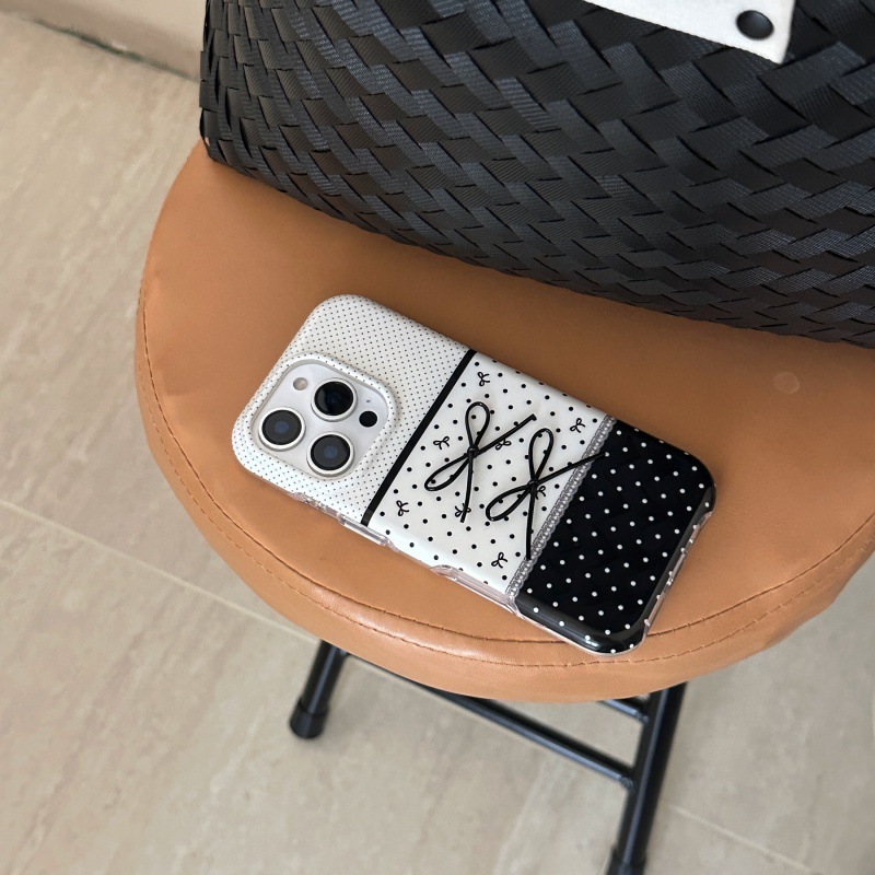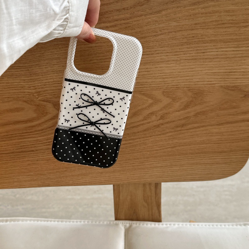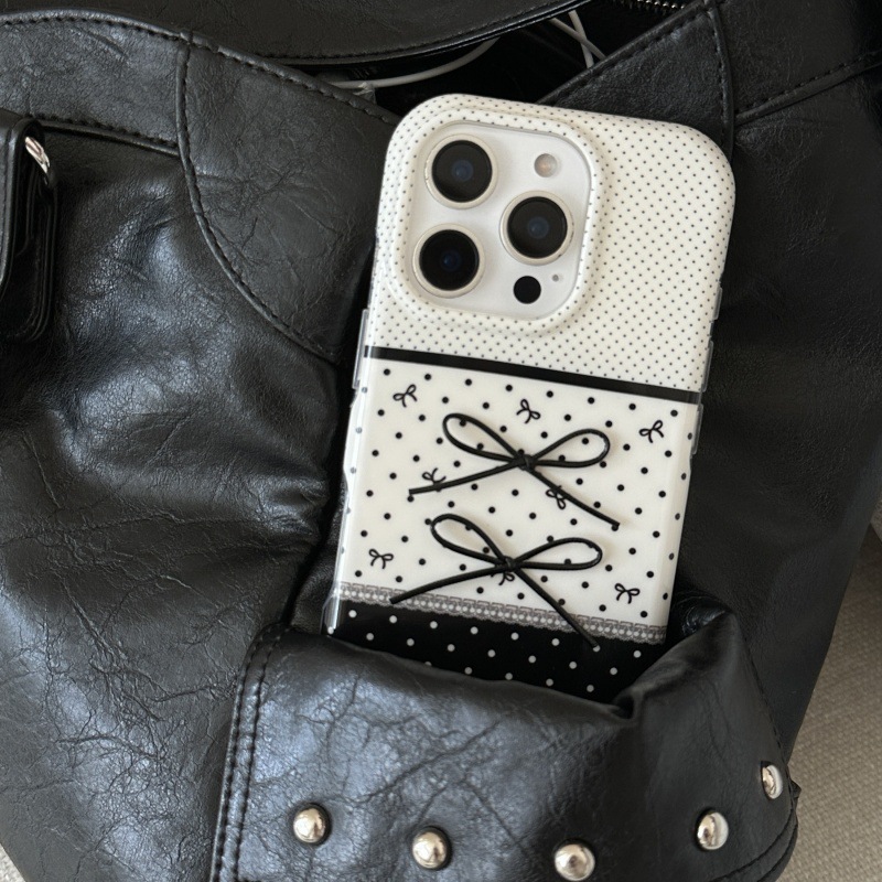 Black And White Polka Dot Stitching Stereo Bow Phone Case
