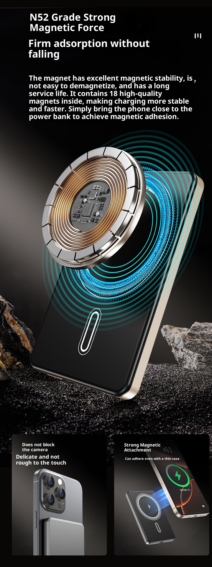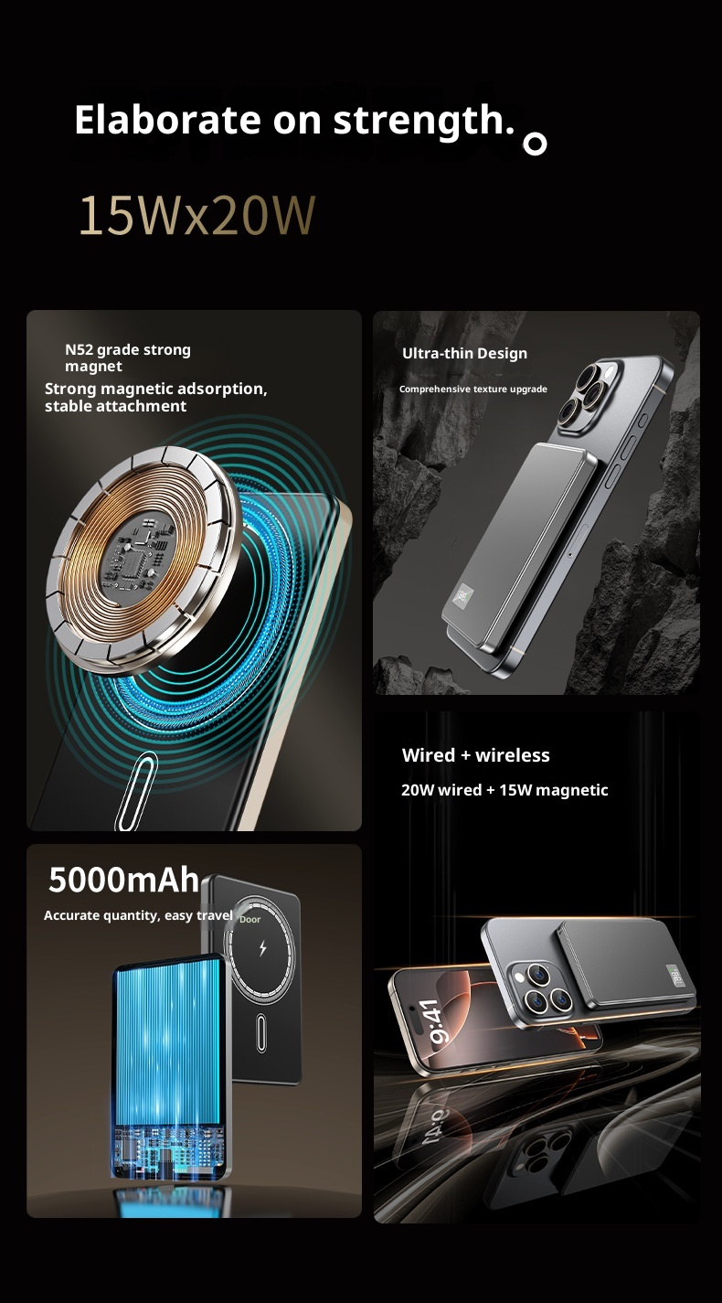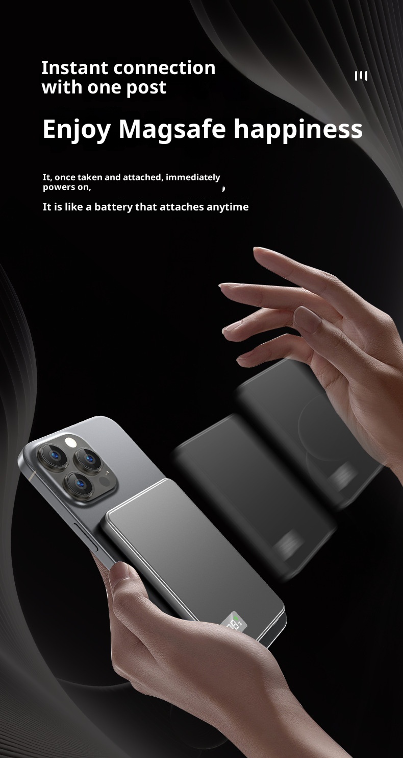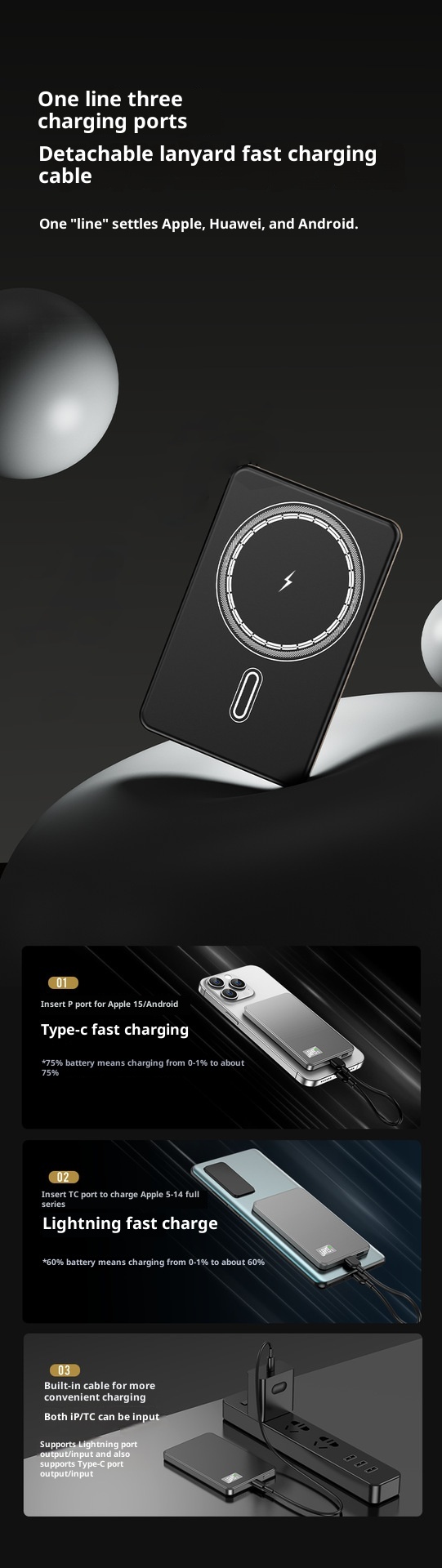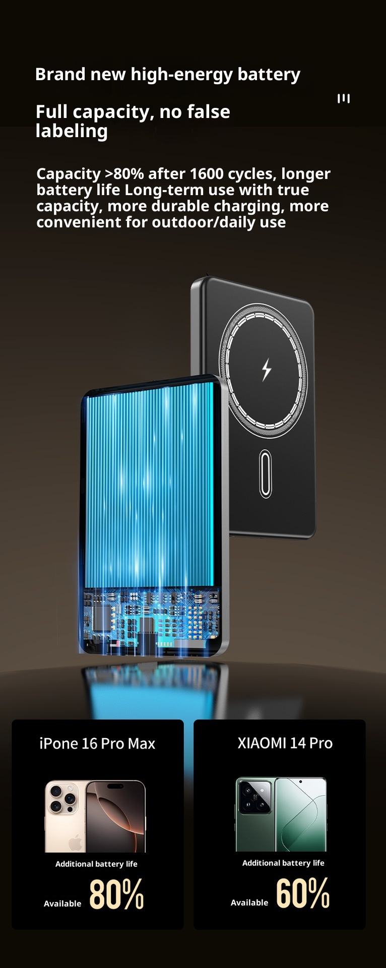 Ultra-thin Fast Charging Magnetic Power Bank With Built-in Cable